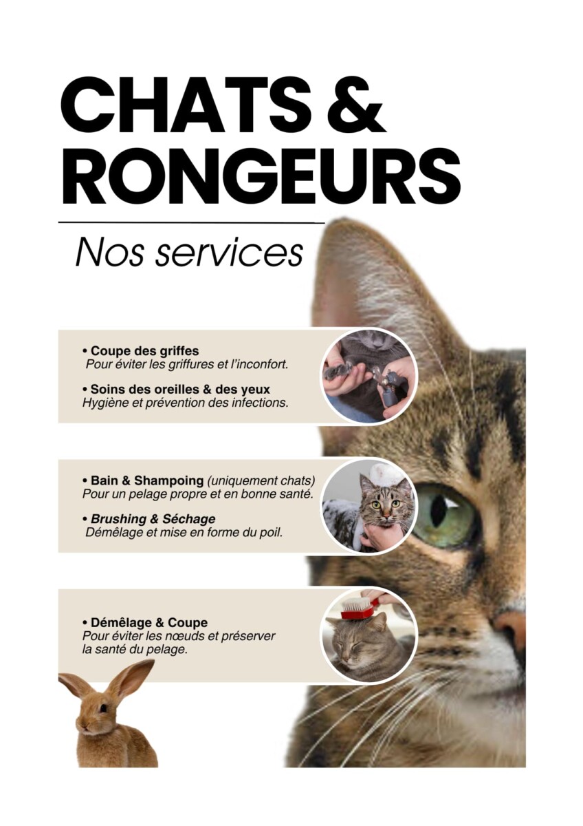 Le salon fonctionne exclusivement sur rendez-vous, afin de garantir un service individualisé, sans stress ni attente prolongée pour l’animal. L’objectif : prendre soin de chaque animal dans les meilleures conditions possibles.